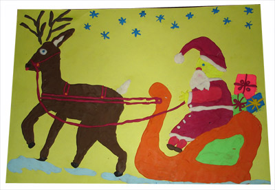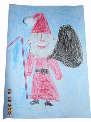Mama napisała: Mikołaja tak sobie wyobraża Marta, która bardzo lubi wszelkie prace plastyczne, więc praca powstawała z przyjemnością ;)
