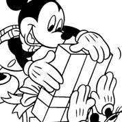 Zobacz jak Boże Narodzenie spędzają bohaterowie Disneya: Myszka Miki i Minnie, Kaczor Donald, Daisy, Goofy i Pluto. Wydrukuj i koloruj.